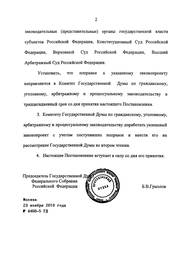 ПОСТАНОВЛЕНИЕ ГД ФС РФ от 23.11.2010 N 4468-5 ГД