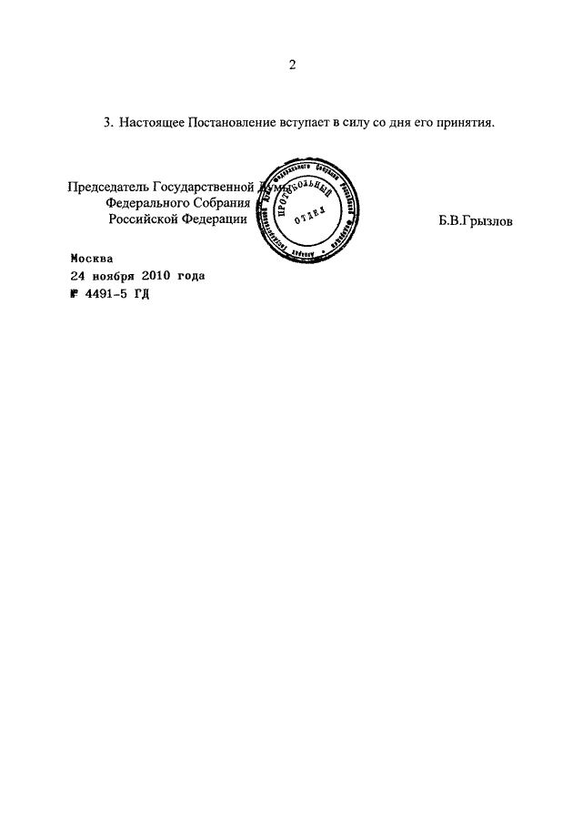ПОСТАНОВЛЕНИЕ ГД ФС РФ от 24.11.2010 N 4491-5 ГД