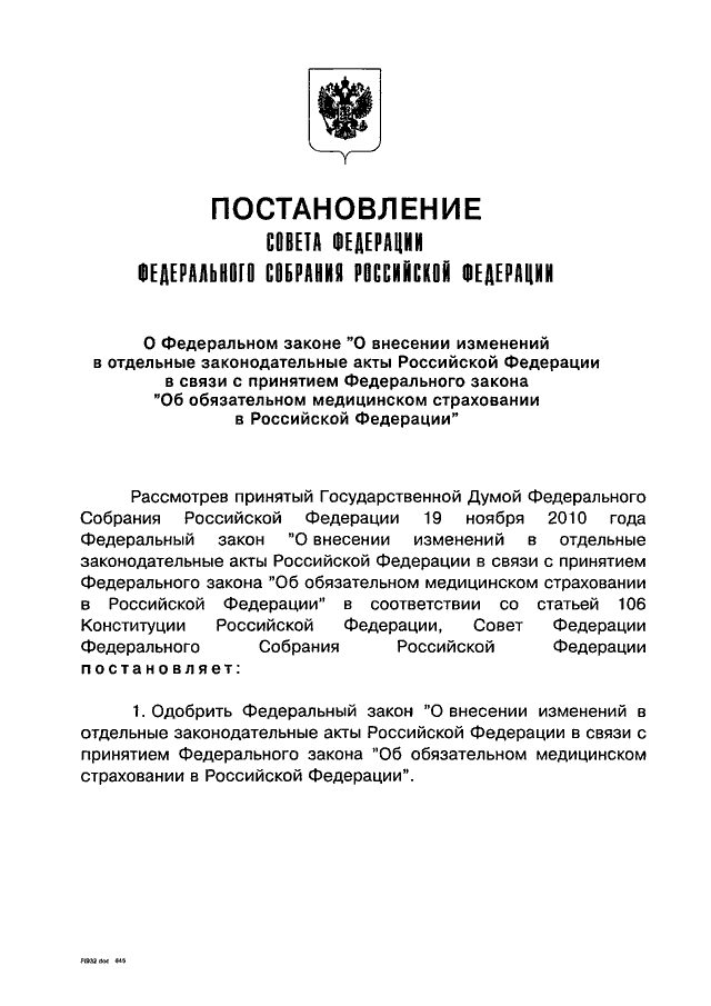 "О ФЕДЕРАЛЬНОМ ЗАКОНЕ "О ВНЕСЕНИИ ИЗМЕНЕНИЙ В ОТДЕЛЬНЫЕ ЗАКОНОДАТЕЛЬНЫЕ АКТЫ РОССИЙСКОЙ ФЕДЕРАЦИИ В СВЯЗИ С ПРИНЯТИЕМ ФЕДЕРАЛЬНОГО ЗАКОНА "ОБ ОБЯЗАТЕЛЬНОМ МЕДИЦИНСКОМ СТРАХОВАНИИ В РОССИЙСКОЙ ФЕДЕРАЦИИ"