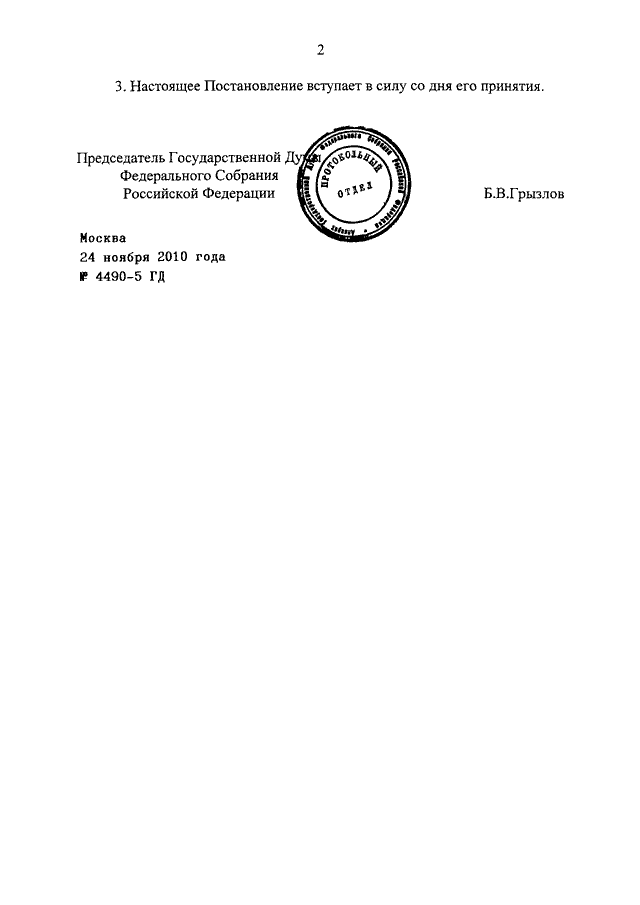 ПОСТАНОВЛЕНИЕ ГД ФС РФ от 24.11.2010 N 4490-5 ГД