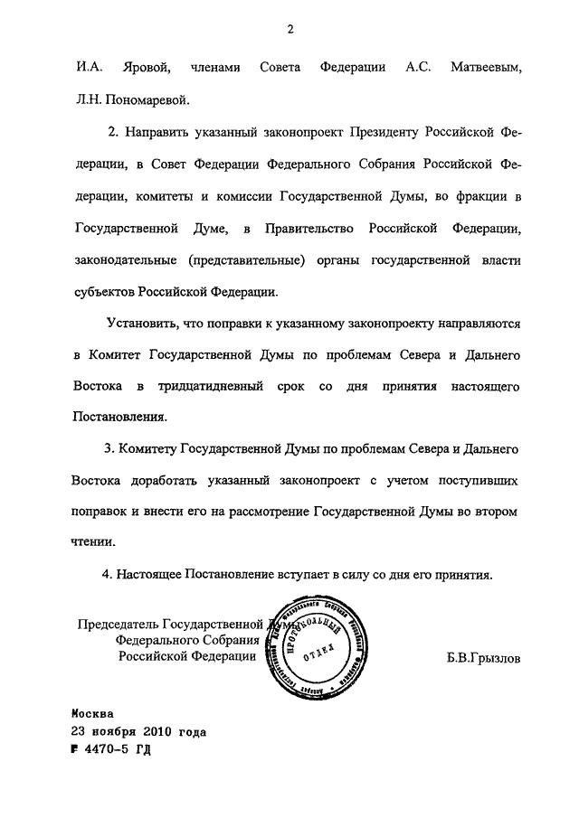 ПОСТАНОВЛЕНИЕ ГД ФС РФ от 23.11.2010 N 4470-5 ГД