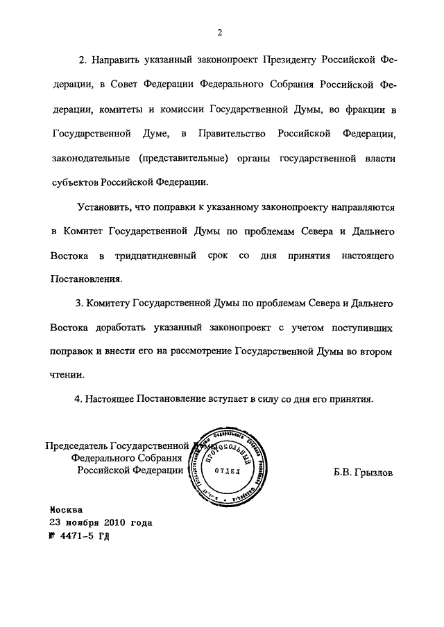 ПОСТАНОВЛЕНИЕ ГД ФС РФ от 23.11.2010 N 4471-5 ГД