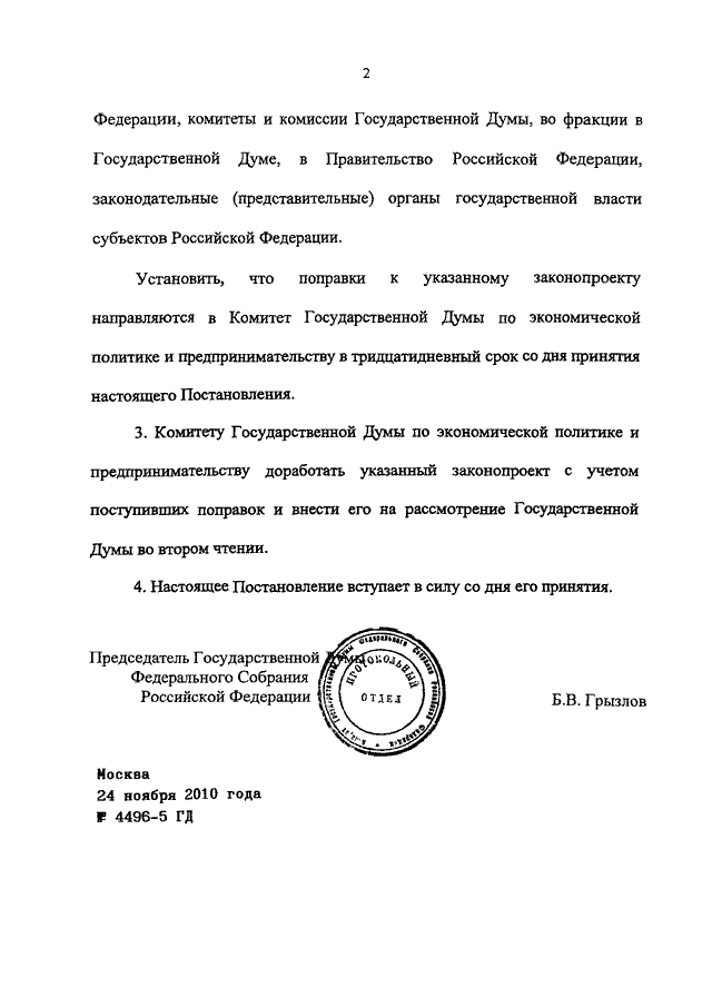 ПОСТАНОВЛЕНИЕ ГД ФС РФ от 24.11.2010 N 4496-5 ГД
