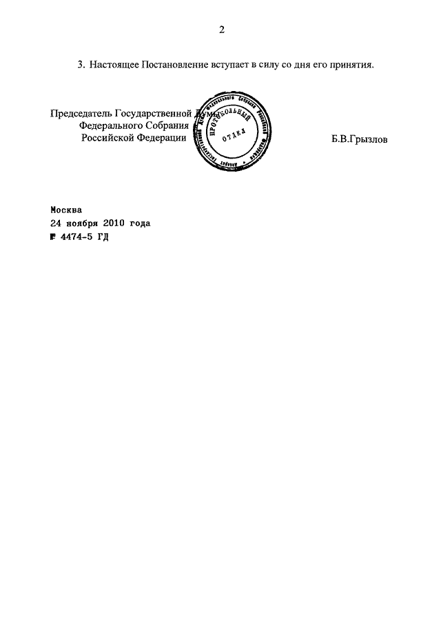 ПОСТАНОВЛЕНИЕ ГД ФС РФ от 24.11.2010 N 4474-5 ГД