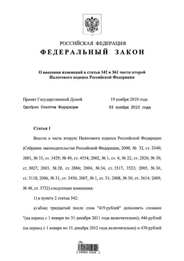 "О ВНЕСЕНИИ ИЗМЕНЕНИЙ В СТАТЬИ 342 И 361 ЧАСТИ ВТОРОЙ НАЛОГОВОГО КОДЕКСА РОССИЙСКОЙ ФЕДЕРАЦИИ"