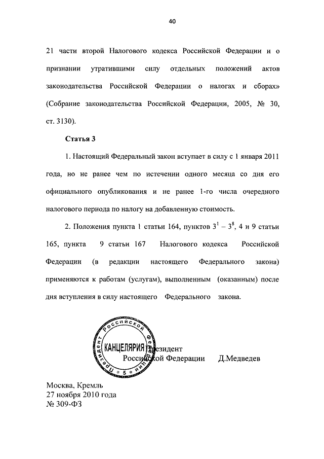 ФЕДЕРАЛЬНЫЙ ЗАКОН от 27.11.2010 N 309-ФЗ