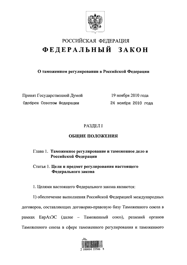 "О ТАМОЖЕННОМ РЕГУЛИРОВАНИИ В РОССИЙСКОЙ ФЕДЕРАЦИИ"
