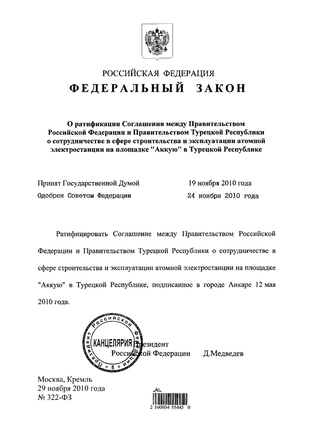 ФЕДЕРАЛЬНЫЙ ЗАКОН от 29.11.2010 N 322-ФЗ