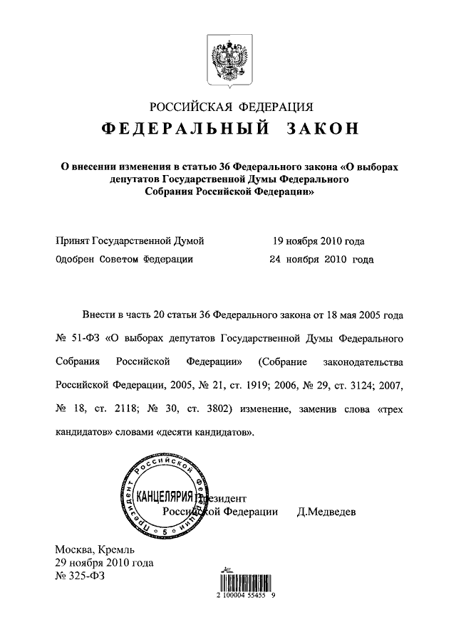 ФЕДЕРАЛЬНЫЙ ЗАКОН от 29.11.2010 N 325-ФЗ