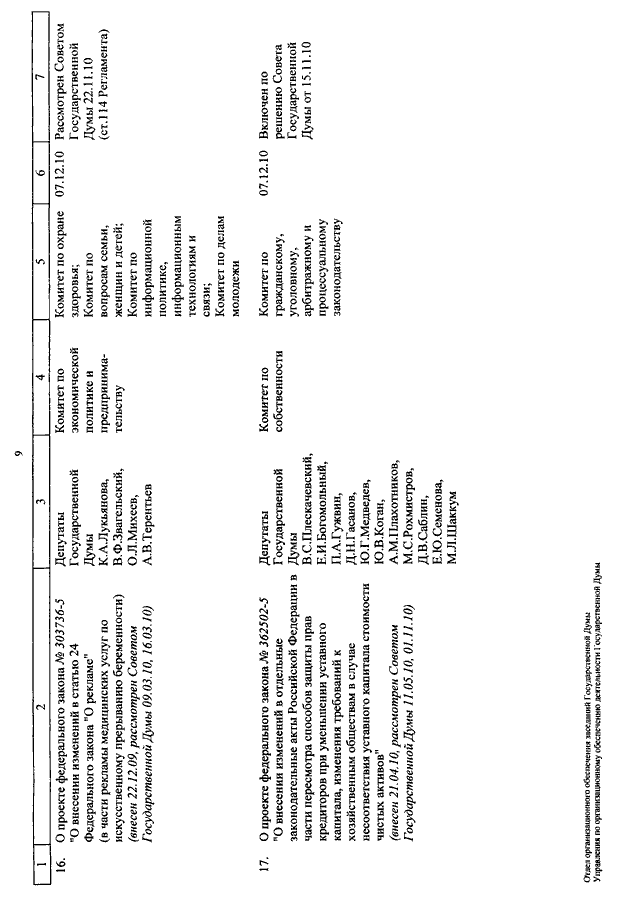 "О КАЛЕНДАРЕ РАССМОТРЕНИЯ ВОПРОСОВ ГОСУДАРСТВЕННОЙ ДУМОЙ С 7 ПО 24 ДЕКАБРЯ 2010 ГОДА"