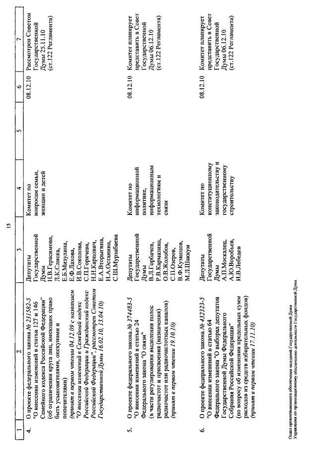 "О КАЛЕНДАРЕ РАССМОТРЕНИЯ ВОПРОСОВ ГОСУДАРСТВЕННОЙ ДУМОЙ С 7 ПО 24 ДЕКАБРЯ 2010 ГОДА"