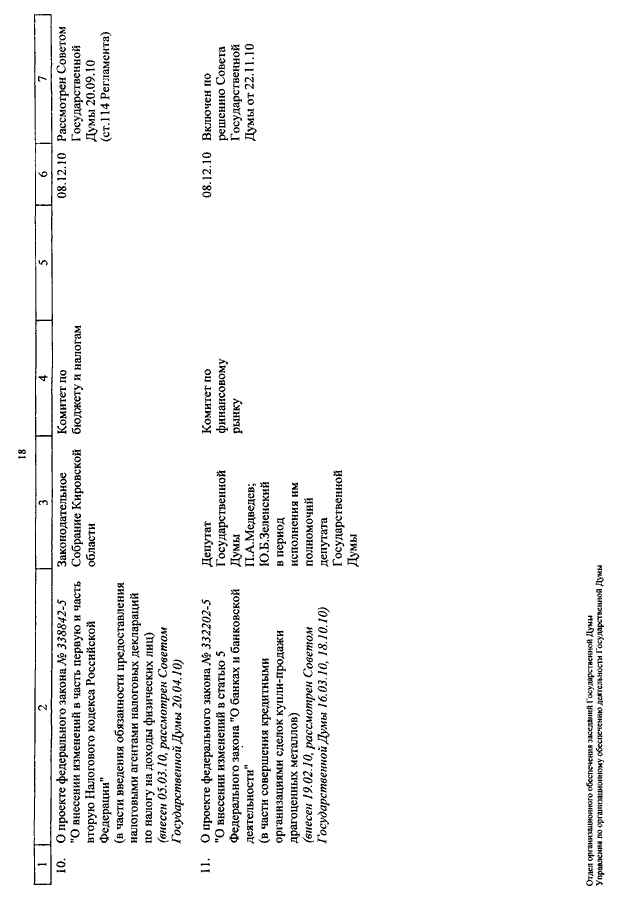 "О КАЛЕНДАРЕ РАССМОТРЕНИЯ ВОПРОСОВ ГОСУДАРСТВЕННОЙ ДУМОЙ С 7 ПО 24 ДЕКАБРЯ 2010 ГОДА"