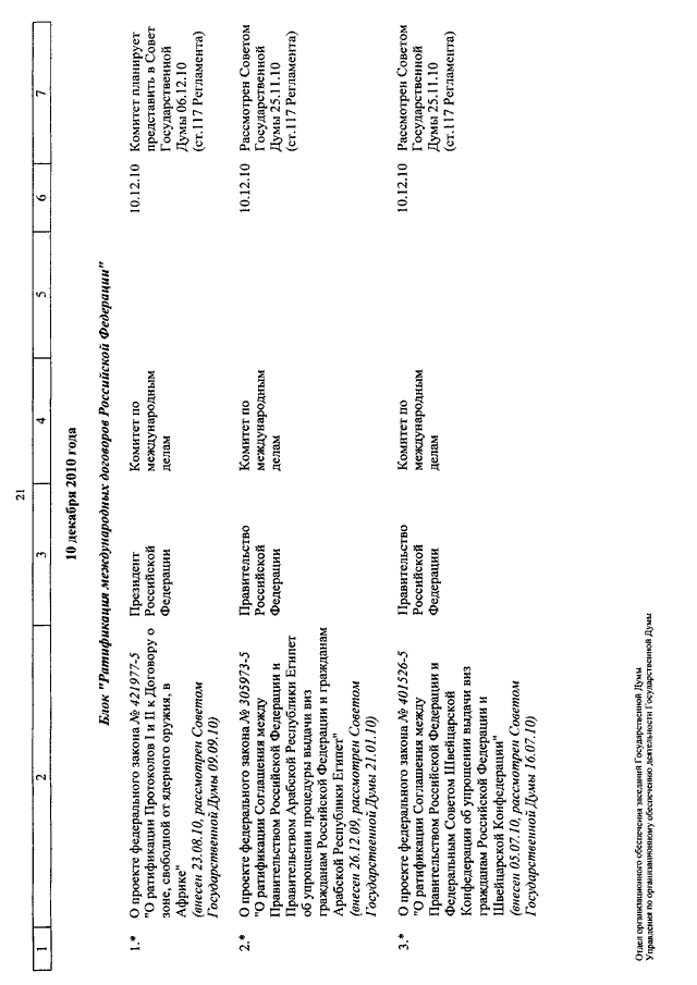 "О КАЛЕНДАРЕ РАССМОТРЕНИЯ ВОПРОСОВ ГОСУДАРСТВЕННОЙ ДУМОЙ С 7 ПО 24 ДЕКАБРЯ 2010 ГОДА"