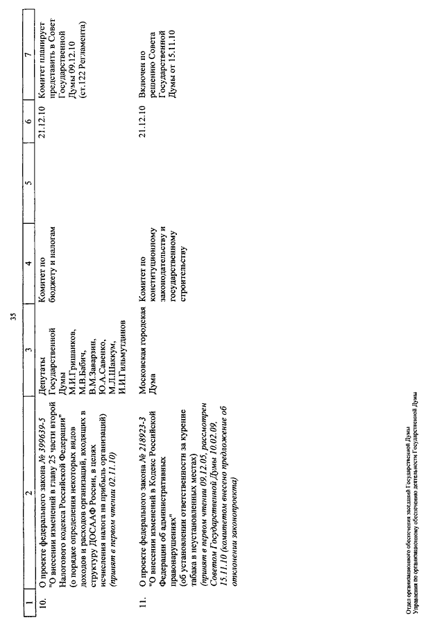 "О КАЛЕНДАРЕ РАССМОТРЕНИЯ ВОПРОСОВ ГОСУДАРСТВЕННОЙ ДУМОЙ С 7 ПО 24 ДЕКАБРЯ 2010 ГОДА"