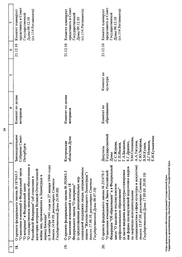 "О КАЛЕНДАРЕ РАССМОТРЕНИЯ ВОПРОСОВ ГОСУДАРСТВЕННОЙ ДУМОЙ С 7 ПО 24 ДЕКАБРЯ 2010 ГОДА"
