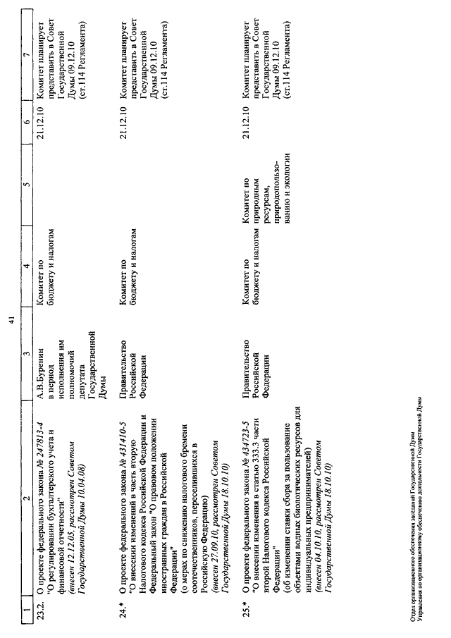 "О КАЛЕНДАРЕ РАССМОТРЕНИЯ ВОПРОСОВ ГОСУДАРСТВЕННОЙ ДУМОЙ С 7 ПО 24 ДЕКАБРЯ 2010 ГОДА"