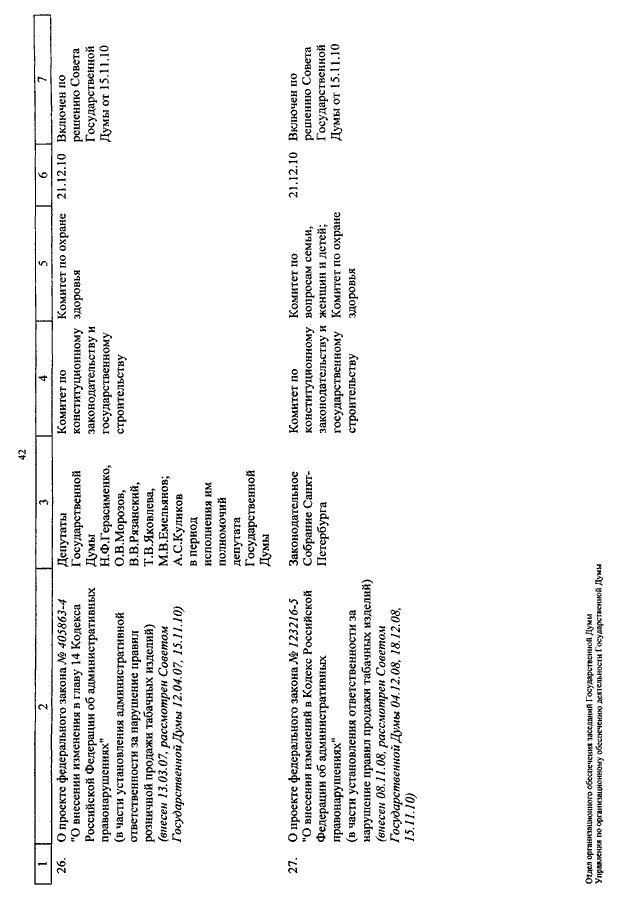 "О КАЛЕНДАРЕ РАССМОТРЕНИЯ ВОПРОСОВ ГОСУДАРСТВЕННОЙ ДУМОЙ С 7 ПО 24 ДЕКАБРЯ 2010 ГОДА"