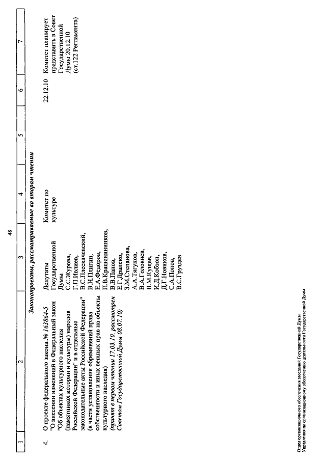 "О КАЛЕНДАРЕ РАССМОТРЕНИЯ ВОПРОСОВ ГОСУДАРСТВЕННОЙ ДУМОЙ С 7 ПО 24 ДЕКАБРЯ 2010 ГОДА"