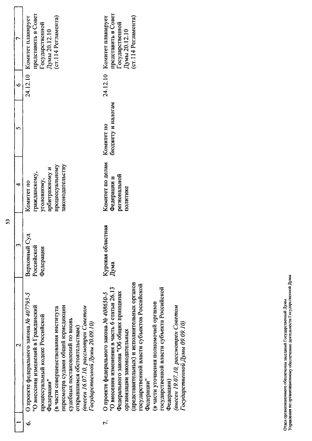"О КАЛЕНДАРЕ РАССМОТРЕНИЯ ВОПРОСОВ ГОСУДАРСТВЕННОЙ ДУМОЙ С 7 ПО 24 ДЕКАБРЯ 2010 ГОДА"