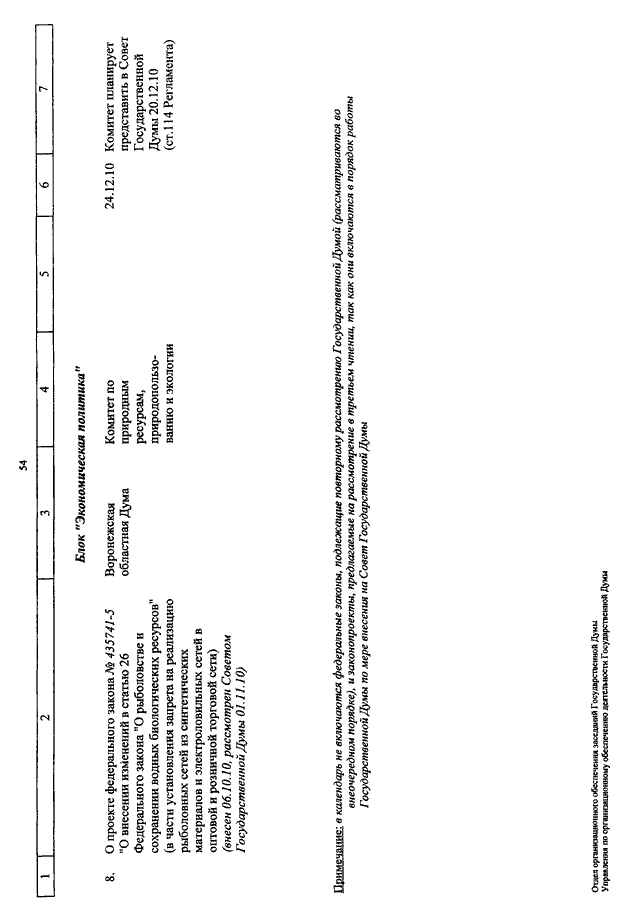 "О КАЛЕНДАРЕ РАССМОТРЕНИЯ ВОПРОСОВ ГОСУДАРСТВЕННОЙ ДУМОЙ С 7 ПО 24 ДЕКАБРЯ 2010 ГОДА"