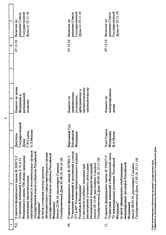 "О КАЛЕНДАРЕ РАССМОТРЕНИЯ ВОПРОСОВ ГОСУДАРСТВЕННОЙ ДУМОЙ С 7 ПО 24 ДЕКАБРЯ 2010 ГОДА"