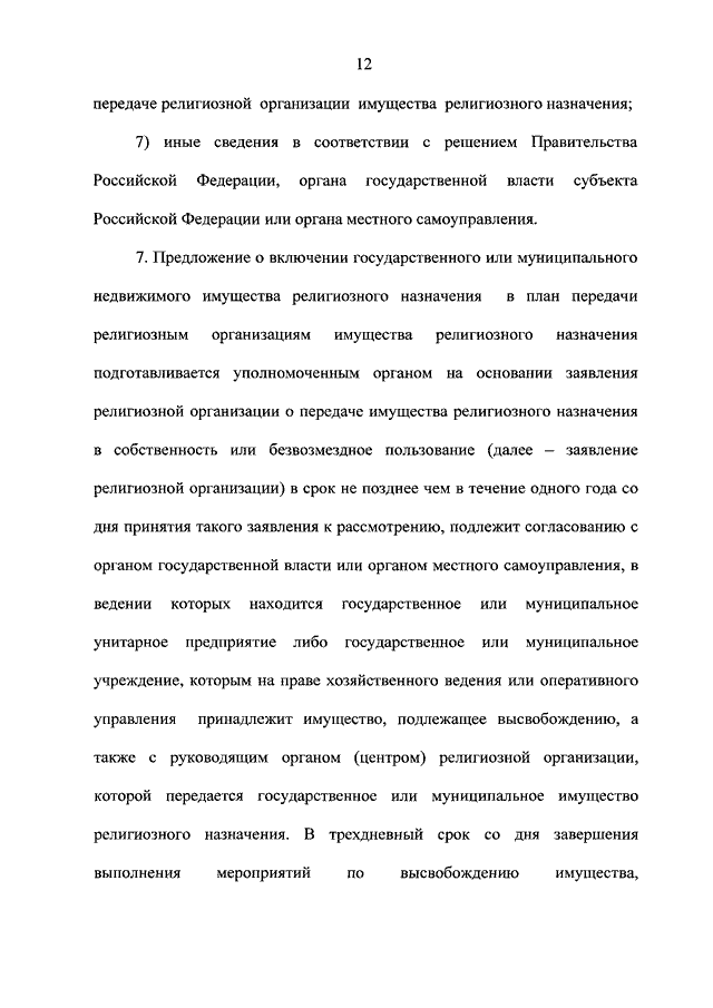 "О ПЕРЕДАЧЕ РЕЛИГИОЗНЫМ ОРГАНИЗАЦИЯМ ИМУЩЕСТВА РЕЛИГИОЗНОГО НАЗНАЧЕНИЯ, НАХОДЯЩЕГОСЯ В ГОСУДАРСТВЕННОЙ ИЛИ МУНИЦИПАЛЬНОЙ СОБСТВЕННОСТИ"