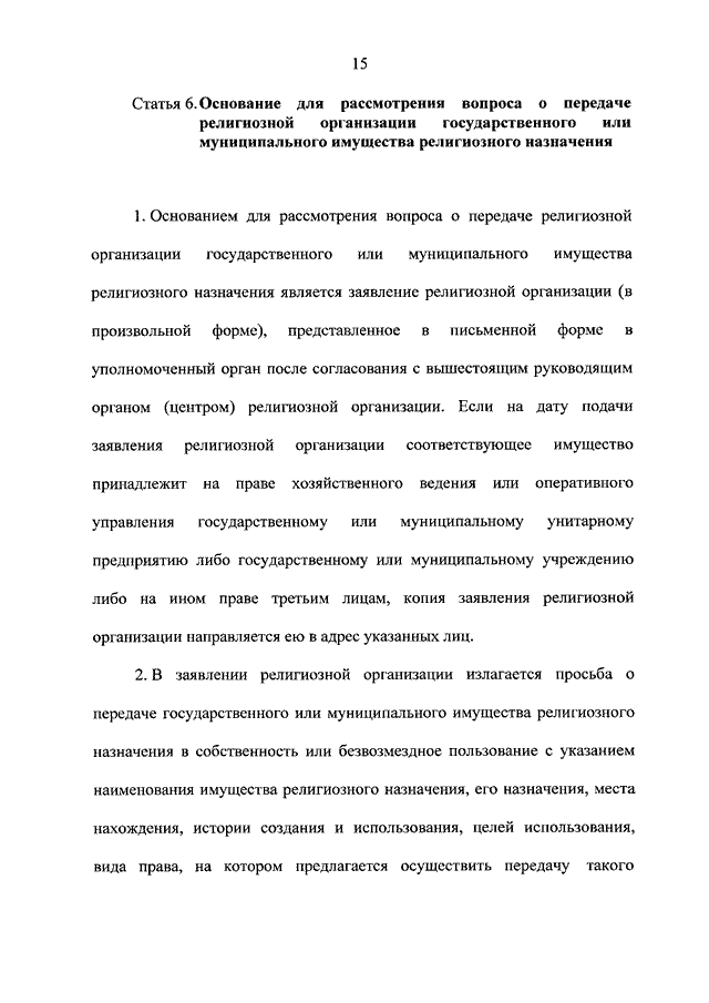 "О ПЕРЕДАЧЕ РЕЛИГИОЗНЫМ ОРГАНИЗАЦИЯМ ИМУЩЕСТВА РЕЛИГИОЗНОГО НАЗНАЧЕНИЯ, НАХОДЯЩЕГОСЯ В ГОСУДАРСТВЕННОЙ ИЛИ МУНИЦИПАЛЬНОЙ СОБСТВЕННОСТИ"