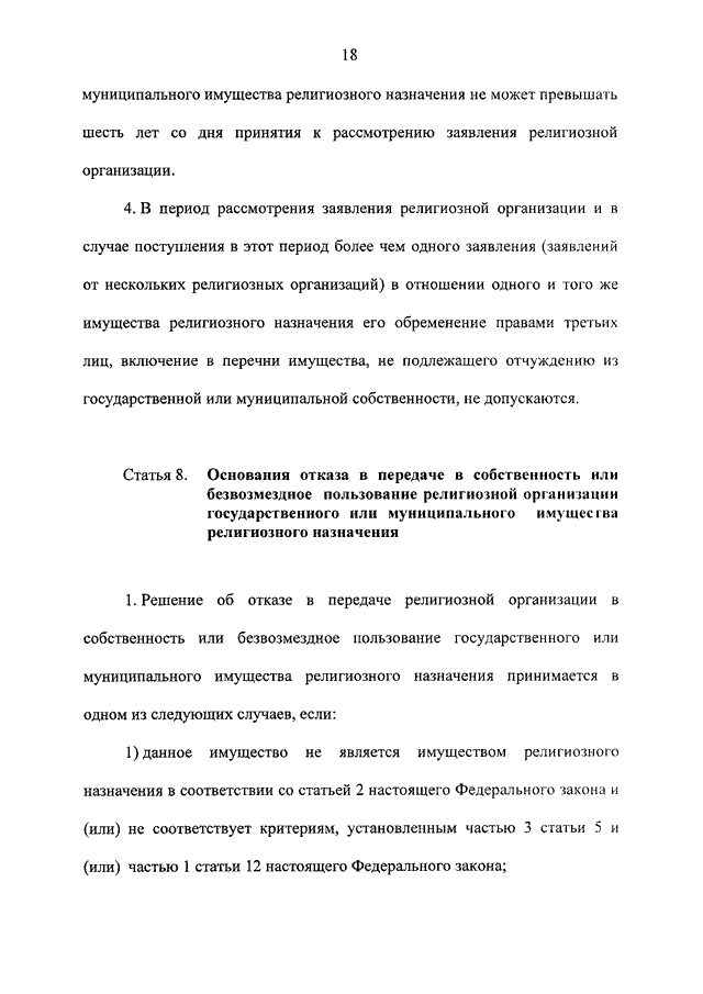 "О ПЕРЕДАЧЕ РЕЛИГИОЗНЫМ ОРГАНИЗАЦИЯМ ИМУЩЕСТВА РЕЛИГИОЗНОГО НАЗНАЧЕНИЯ, НАХОДЯЩЕГОСЯ В ГОСУДАРСТВЕННОЙ ИЛИ МУНИЦИПАЛЬНОЙ СОБСТВЕННОСТИ"