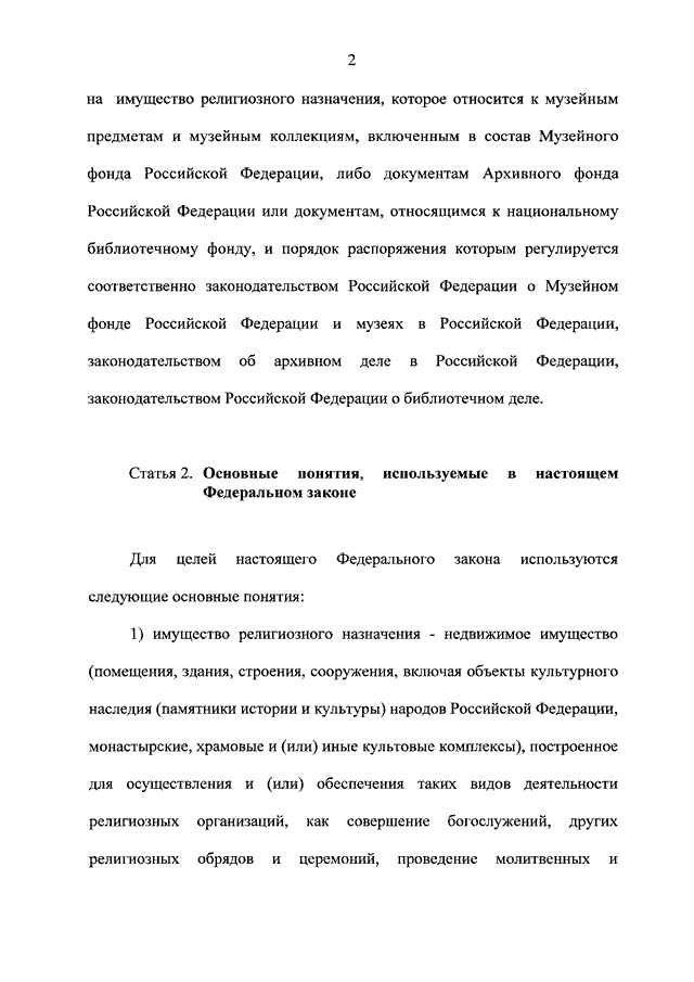 "О ПЕРЕДАЧЕ РЕЛИГИОЗНЫМ ОРГАНИЗАЦИЯМ ИМУЩЕСТВА РЕЛИГИОЗНОГО НАЗНАЧЕНИЯ, НАХОДЯЩЕГОСЯ В ГОСУДАРСТВЕННОЙ ИЛИ МУНИЦИПАЛЬНОЙ СОБСТВЕННОСТИ"