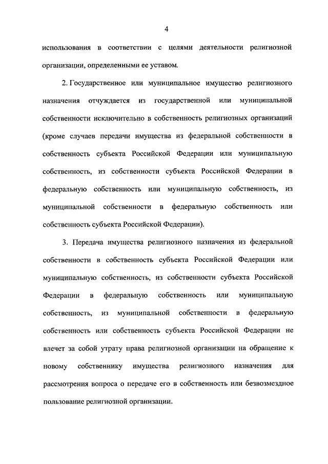 "О ПЕРЕДАЧЕ РЕЛИГИОЗНЫМ ОРГАНИЗАЦИЯМ ИМУЩЕСТВА РЕЛИГИОЗНОГО НАЗНАЧЕНИЯ, НАХОДЯЩЕГОСЯ В ГОСУДАРСТВЕННОЙ ИЛИ МУНИЦИПАЛЬНОЙ СОБСТВЕННОСТИ"