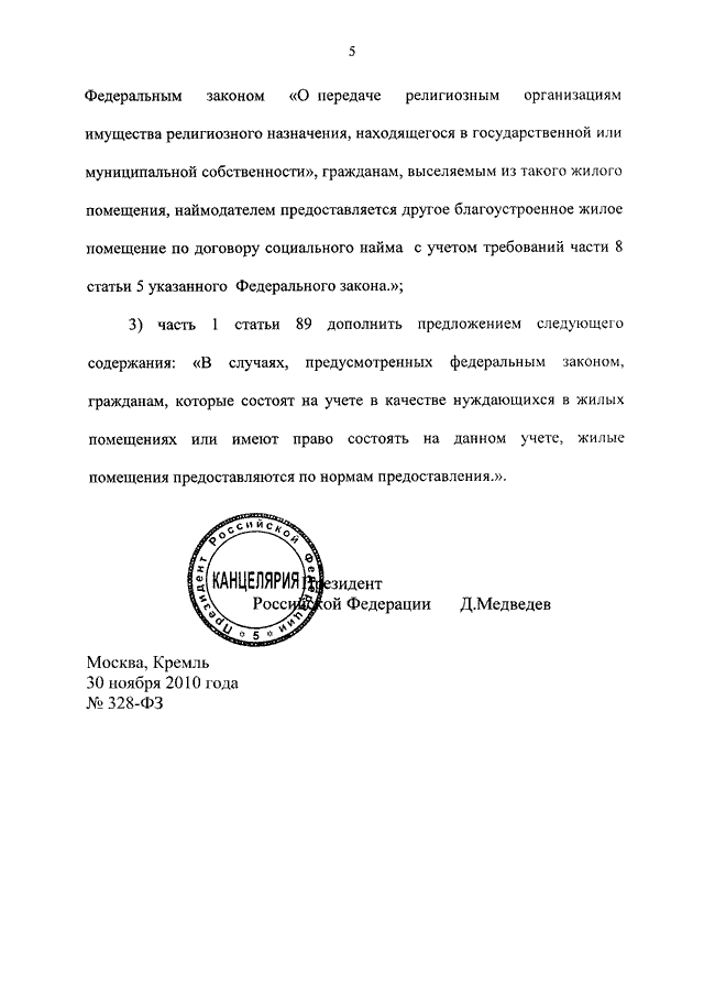 ФЕДЕРАЛЬНЫЙ ЗАКОН от 30.11.2010 N 328-ФЗ