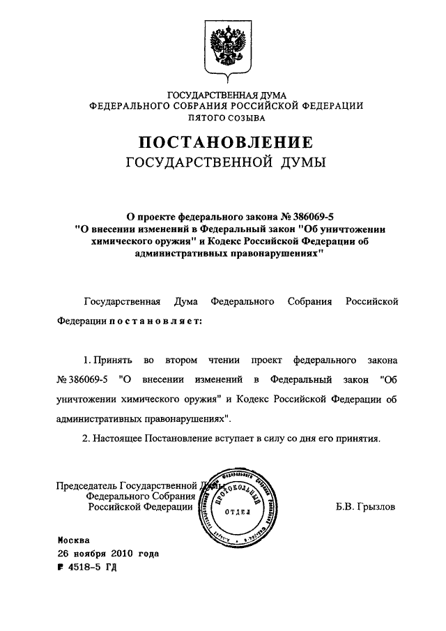 ПОСТАНОВЛЕНИЕ ГД ФС РФ от 26.11.2010 N 4518-5 ГД