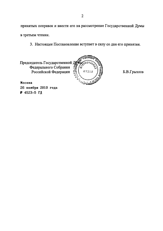 ПОСТАНОВЛЕНИЕ ГД ФС РФ от 26.11.2010 N 4523-5 ГД
