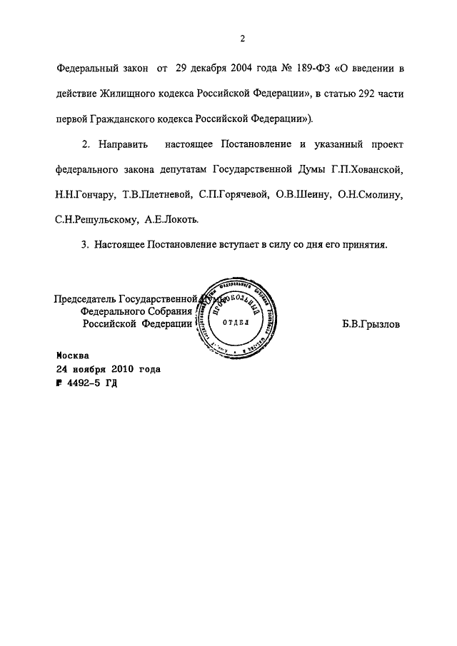 ПОСТАНОВЛЕНИЕ ГД ФС РФ от 24.11.2010 N 4492-5 ГД