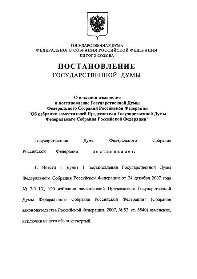 "О ВНЕСЕНИИ ИЗМЕНЕНИЯ В ПОСТАНОВЛЕНИЕ ГОСУДАРСТВЕННОЙ ДУМЫ