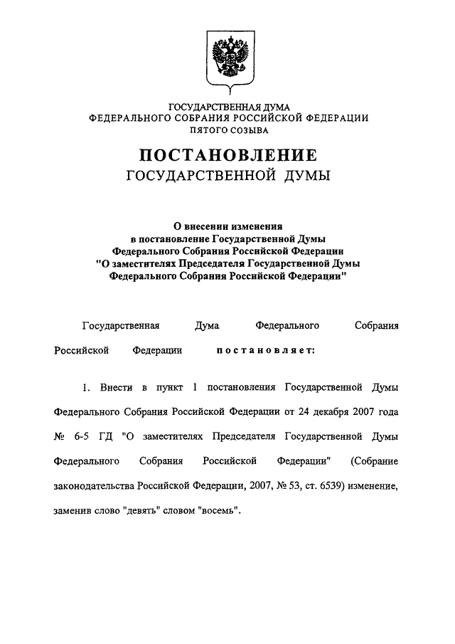 "О ВНЕСЕНИИ ИЗМЕНЕНИЯ В ПОСТАНОВЛЕНИЕ ГОСУДАРСТВЕННОЙ ДУМЫ ФЕДЕРАЛЬНОГО СОБРАНИЯ РОССИЙСКОЙ ФЕДЕРАЦИИ "О ЗАМЕСТИТЕЛЯХ ПРЕДСЕДАТЕЛЯ ГОСУДАРСТВЕННОЙ ДУМЫ ФЕДЕРАЛЬНОГО СОБРАНИЯ РОССИЙСКОЙ ФЕДЕРАЦИИ"