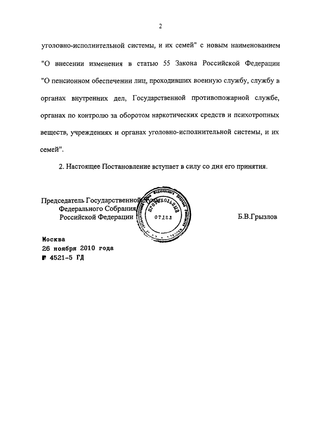 ПОСТАНОВЛЕНИЕ ГД ФС РФ от 26.11.2010 N 4521-5 ГД