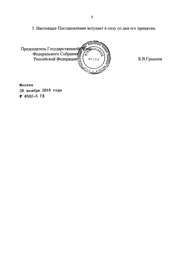 ПОСТАНОВЛЕНИЕ ГД ФС РФ от 26.11.2010 N 4502-5 ГД