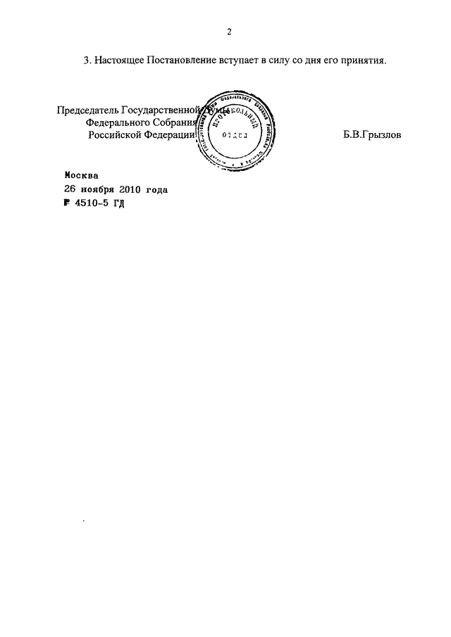 ПОСТАНОВЛЕНИЕ ГД ФС РФ от 26.11.2010 N 4510-5 ГД