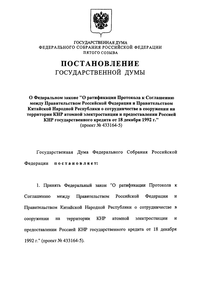 ГОСУДАРСТВЕННОГО КРЕДИТА ОТ 18 ДЕКАБРЯ 1992 Г." (ПРОЕКТ