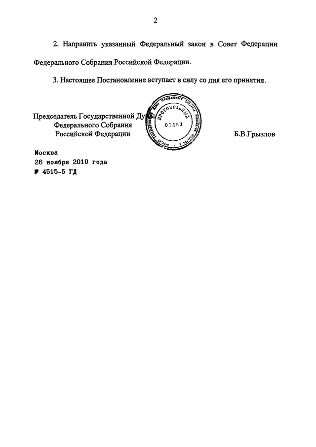 ПОСТАНОВЛЕНИЕ ГД ФС РФ от 26.11.2010 N 4515-5 ГД