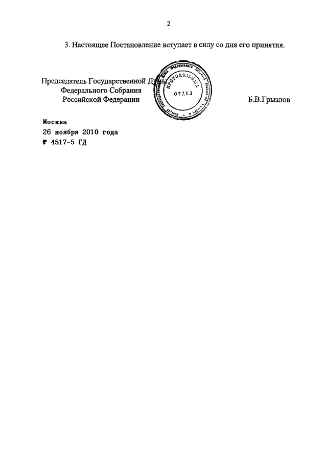 ПОСТАНОВЛЕНИЕ ГД ФС РФ от 26.11.2010 N 4517-5 ГД