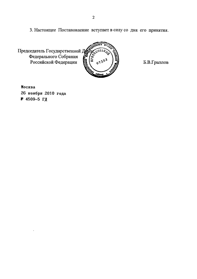 ПОСТАНОВЛЕНИЕ ГД ФС РФ от 26.11.2010 N 4509-5 ГД