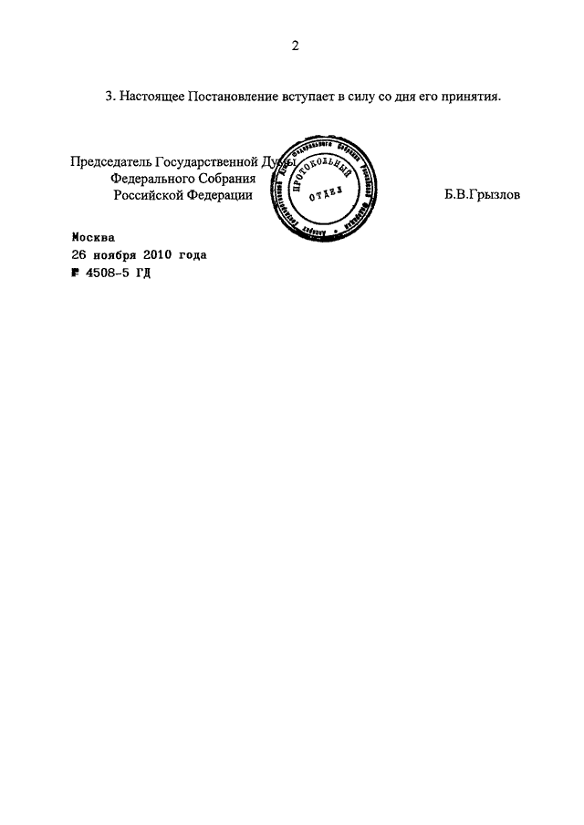 ПОСТАНОВЛЕНИЕ ГД ФС РФ от 26.11.2010 N 4508-5 ГД