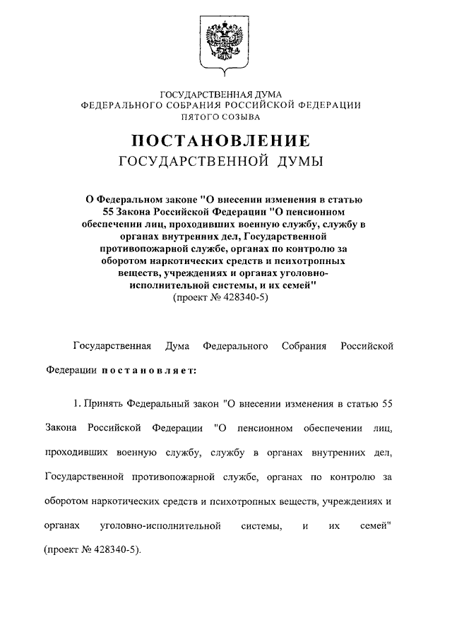 "О ФЕДЕРАЛЬНОМ ЗАКОНЕ "О ВНЕСЕНИИ ИЗМЕНЕНИЯ В СТАТЬЮ 55 ЗАКОНА