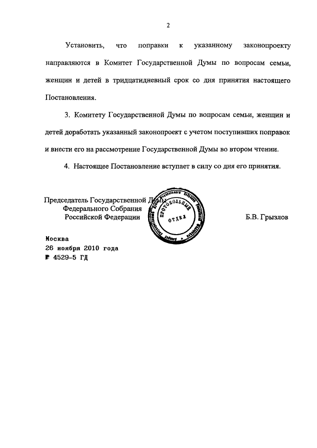 ПОСТАНОВЛЕНИЕ ГД ФС РФ от 26.11.2010 N 4529-5 ГД