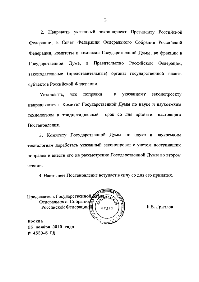 ПОСТАНОВЛЕНИЕ ГД ФС РФ от 26.11.2010 N 4530-5 ГД