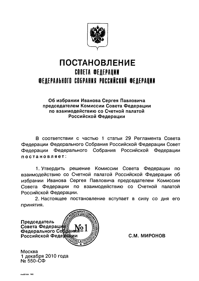ПОСТАНОВЛЕНИЕ СФ ФС РФ от 01.12.2010 N 550-СФ