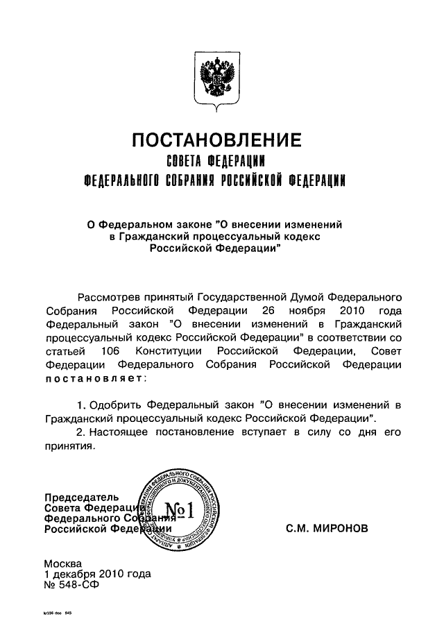 ПОСТАНОВЛЕНИЕ СФ ФС РФ от 01.12.2010 N 548-СФ