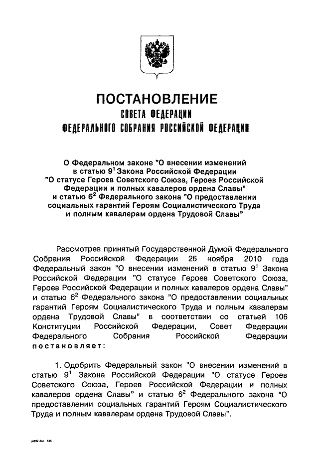 РОССИЙСКОЙ ФЕДЕРАЦИИ И ПОЛНЫХ КАВАЛЕРОВ ОРДЕНА СЛАВЫ" И СТАТЬЮ 6.2